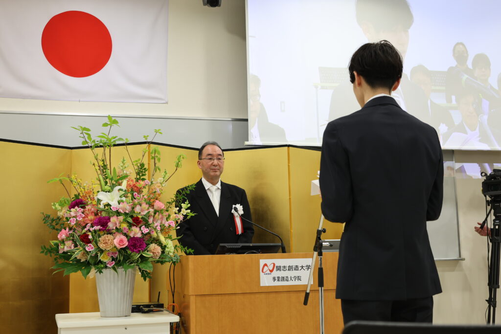 会場には、新入生代表の学生と、教員たちが集結。リアルとオンラインが融合した、まさに「ハイブリッドな入学式」となりました。