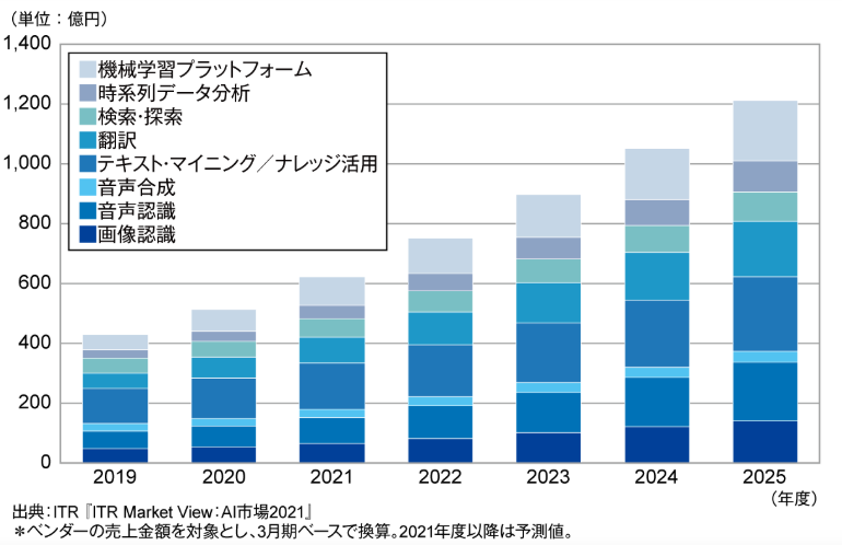 引用:株式会社アイ・ティ・アール「AI主要8市場規模推移および予測」