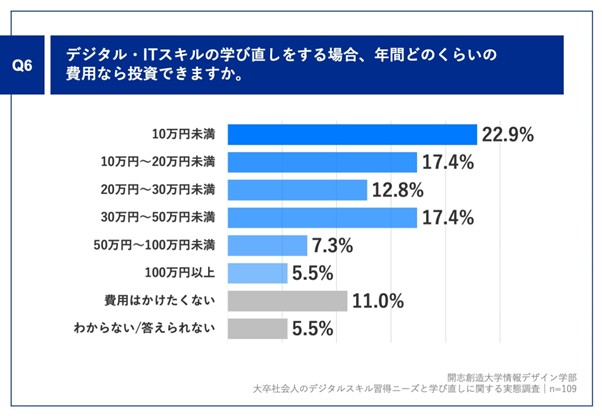 Q6.デジタル・ITスキルの学び直しをする場合、年間どのくらいの費用なら投資できますか。
